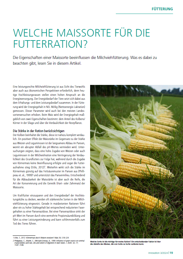 Die Eigenschaften einer Maissorte beeinflussen die Milchviehfütterung. Was es dabei zu beachten gibt, lesen Sie in diesem Artikel.
