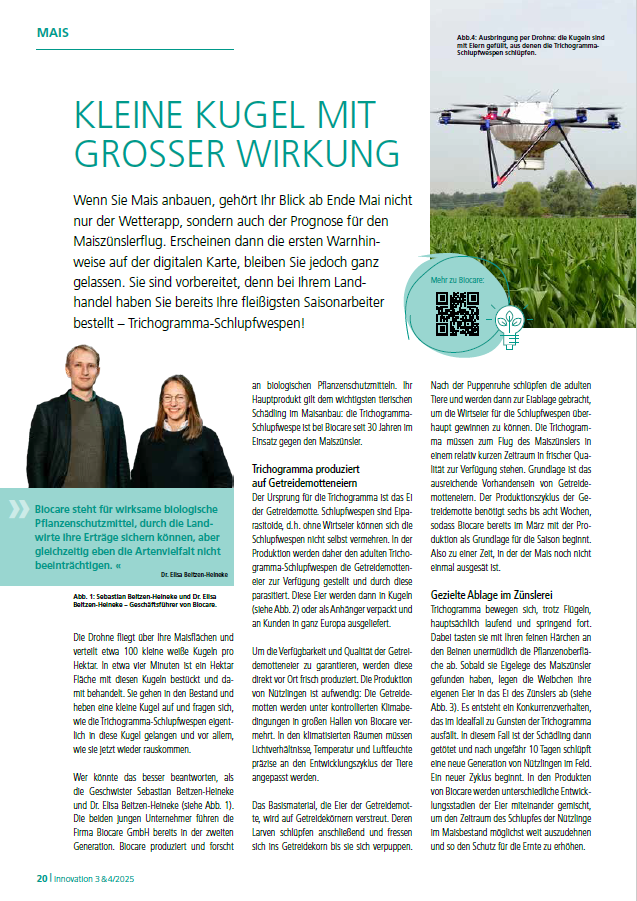 Wenn Sie Mais anbauen, gehört Ihr Blick ab Ende Mai nicht nur der Wetterapp, sondern auch der Prognose für den Maiszünslerflug. Erscheinen dann die ersten Warnhinweise auf der digitalen Karte, bleiben Sie jedoch ganz gelassen. Sie sind vorbereitet, denn bei Ihrem Landhandel haben Sie bereits Ihre fleißigsten Saisonarbeiter bestellt – Trichogramma Schlupfwespen!