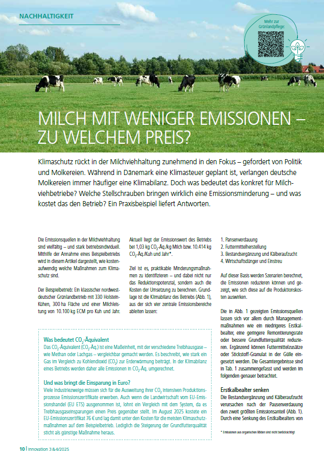 Klimaschutz rückt in der Milchviehhaltung zunehmend in den Fokus – gefordert von Politik und Molkereien. Während in Dänemark eine Klimasteuer geplant ist, verlangen deutsche Molkereien immer häufiger eine Klimabilanz. Doch was bedeutet das konkret für Milchviehbetriebe? Welche Stellschrauben bringen wirklich eine Emissionsminderung – und was kostet das den Betrieb? Ein Praxisbeispiel liefert Antworten.